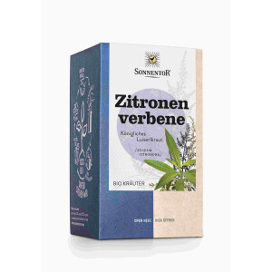 Unser Bio-Zitronenverbene-Tee ist in einer Packung mit 18 Doppelkammerbeuteln erhältlich. Die Verpackung ist wiederverschließbar, um Frische und Aroma zu bewahren. :contentReference[oaicite:4]{index=4}